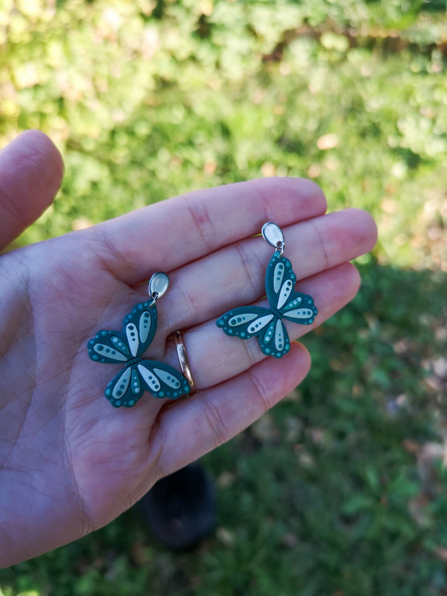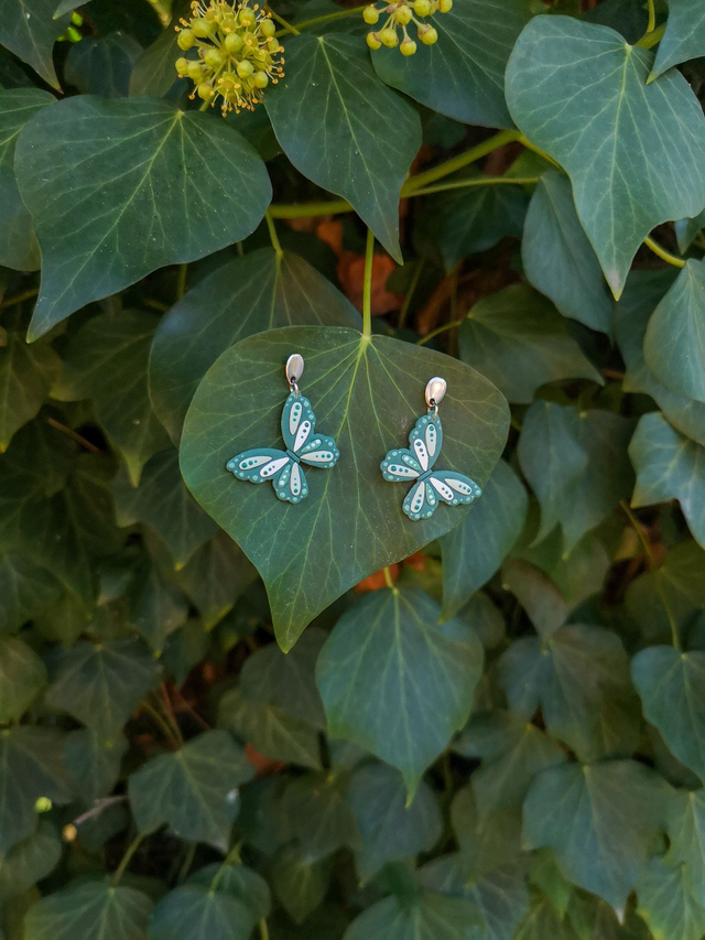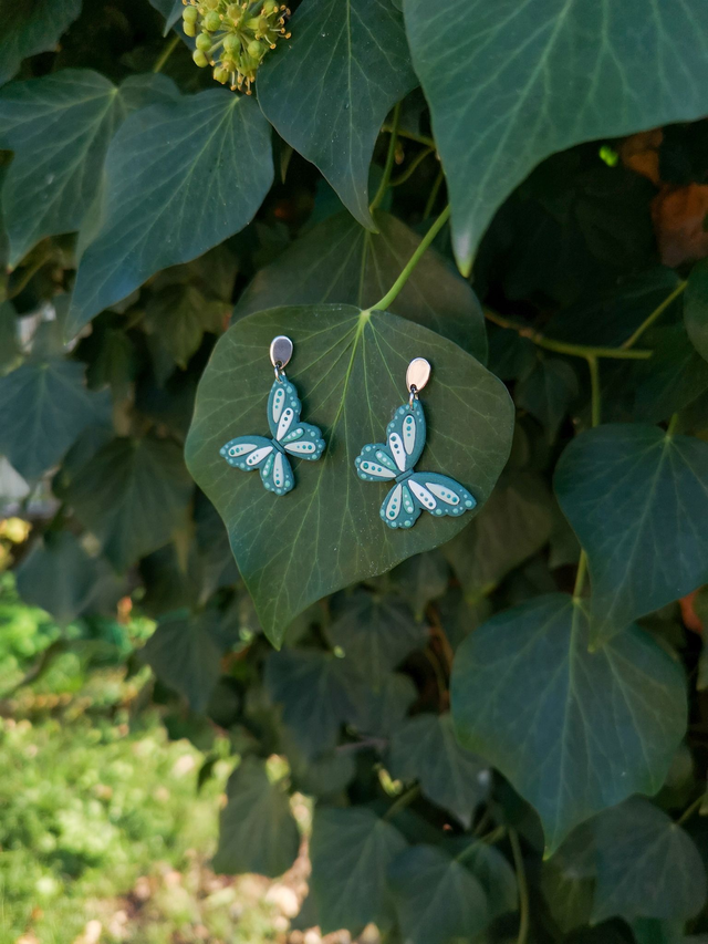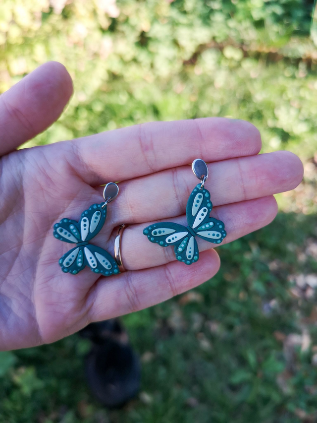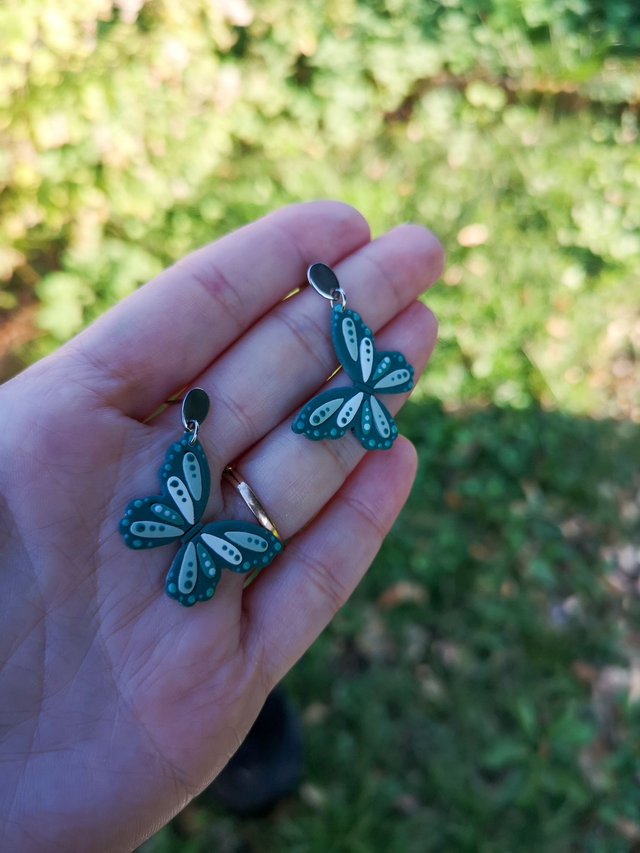 Boucles d'oreilles réalisées en argile polymère, le crochet d'oreille est en acier inoxydable.