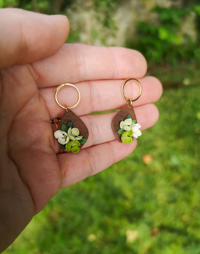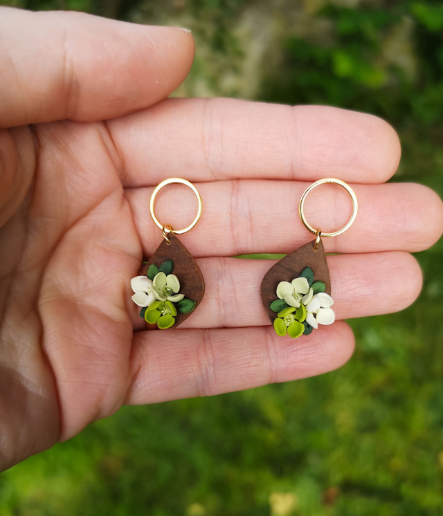 Collection Florale Fougère des Bois- Boucles d'oreilles Jade