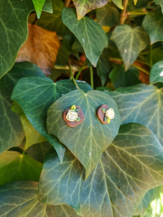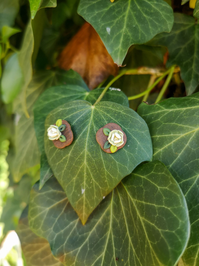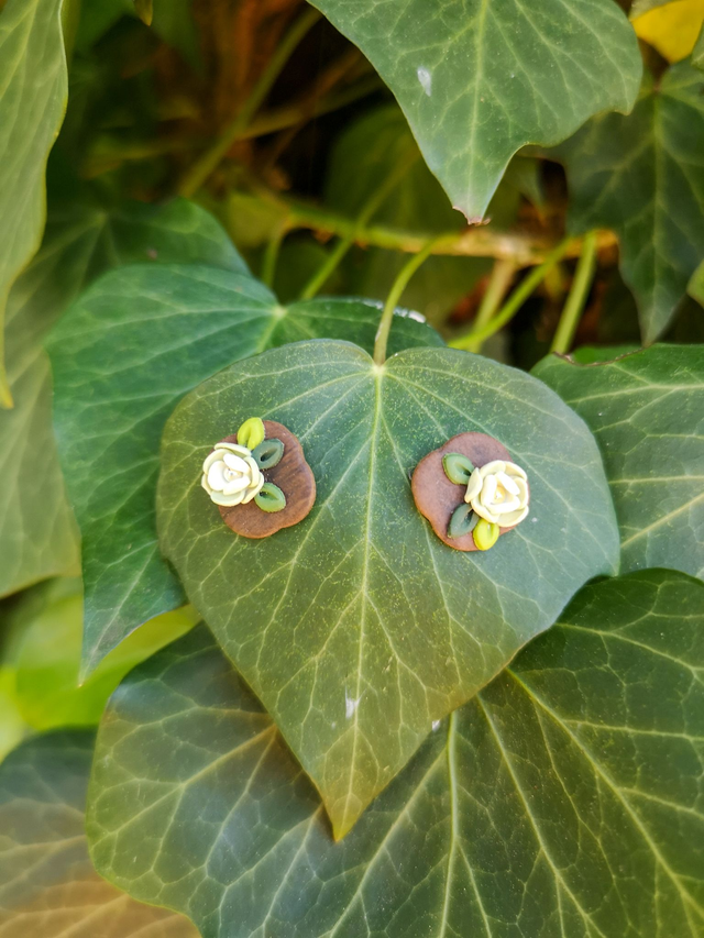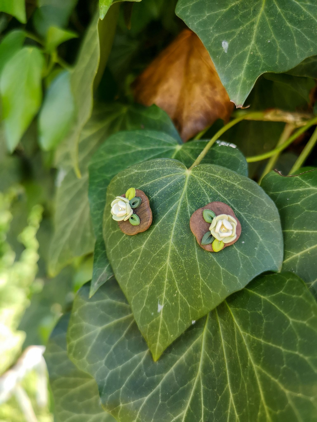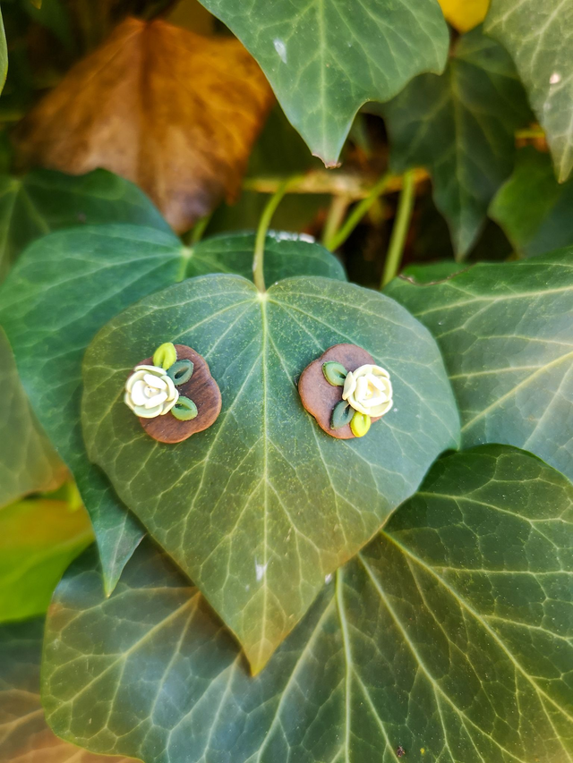 Boucles d'oreilles réalisées en argile polymère, le clou d'oreille est en acier inoxydable.
