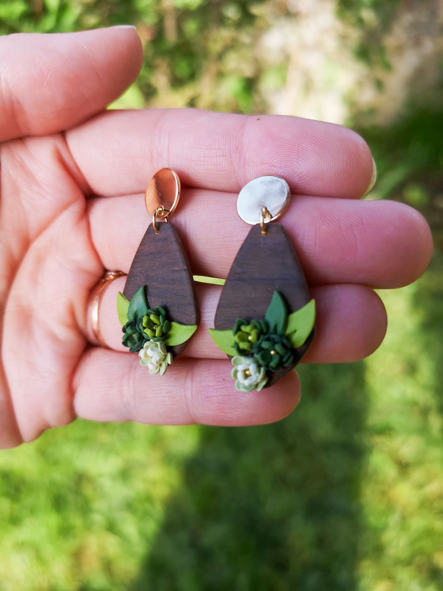 Boucles d'oreilles réalisées en argile polymère, le clou d'oreille est en acier inoxydable.