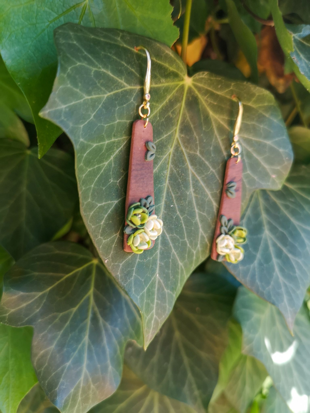 Boucles d'oreilles réalisées en argile polymère, le crochet d'oreille est en acier inoxydable.