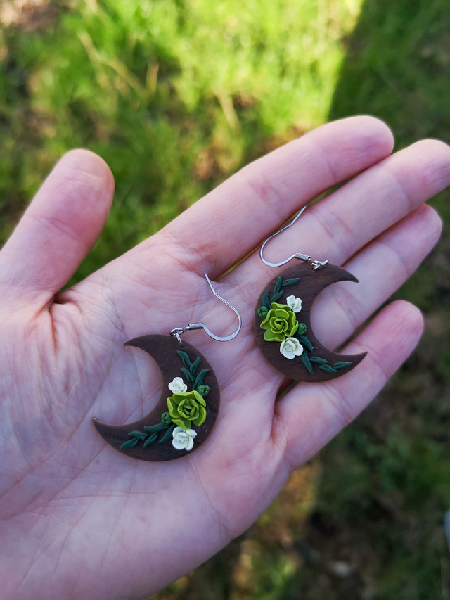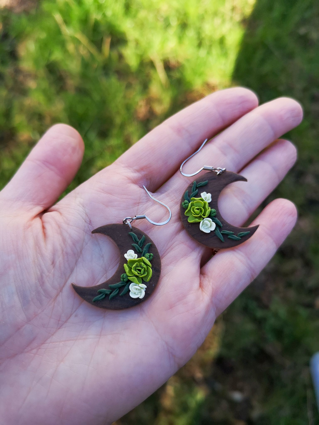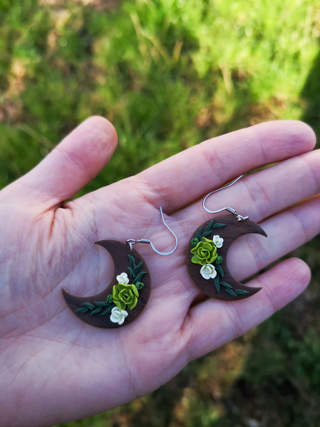 Boucles d'oreilles réalisées en argile polymère, le crochet d'oreille est en acier inoxydable.