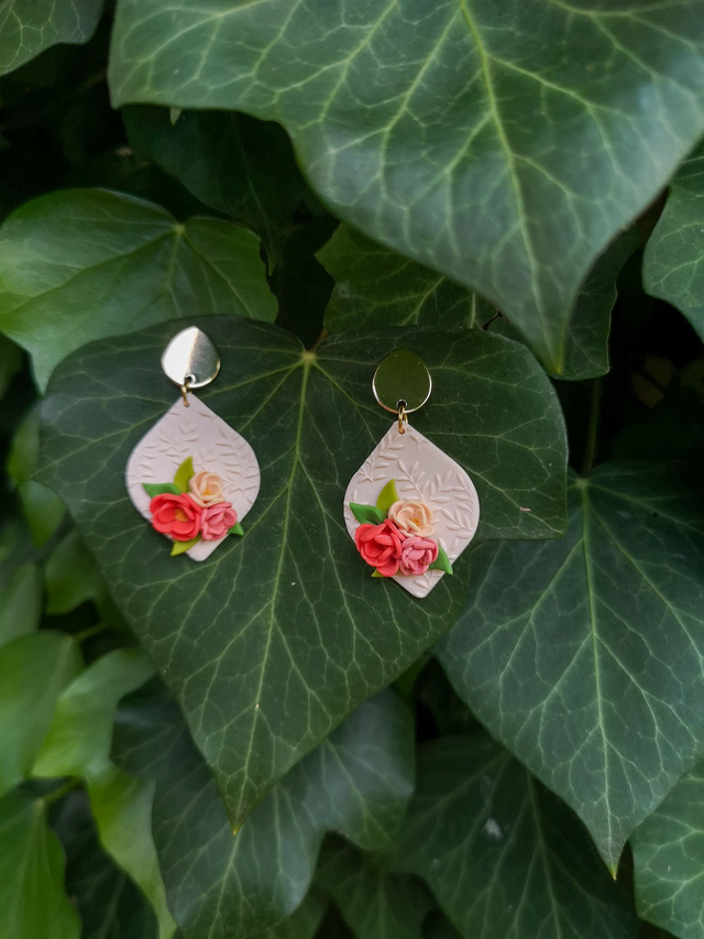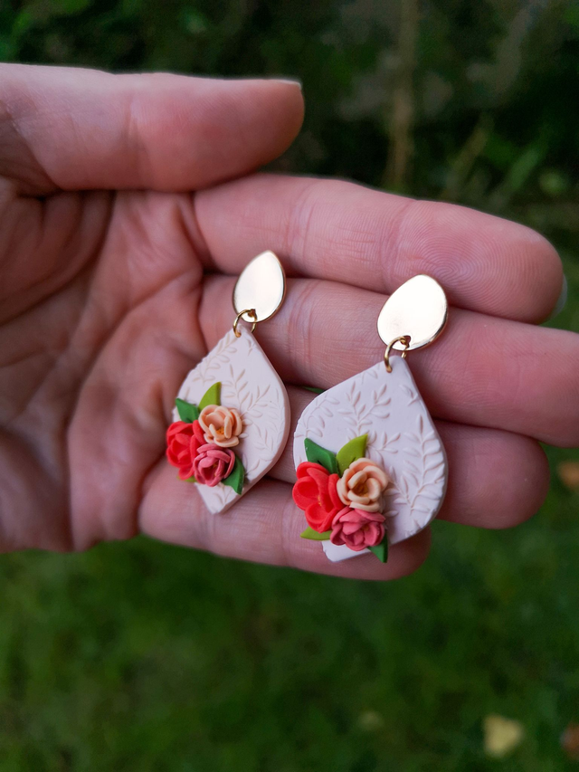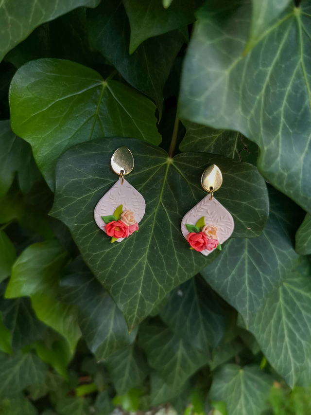 Boucles d'oreilles réalisées en argile polymère, le crochet d'oreille est en acier inoxydable plaqué or fin.