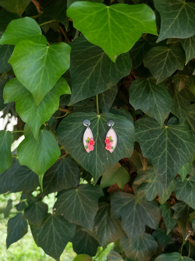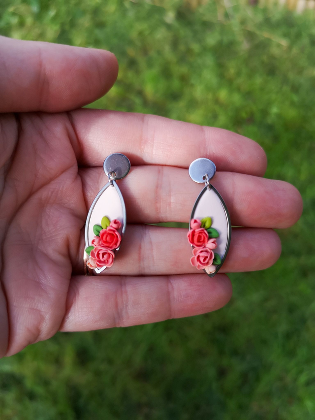 Boucles d'oreilles réalisées en argile polymère, le clou d'oreille est en acier inoxydable.