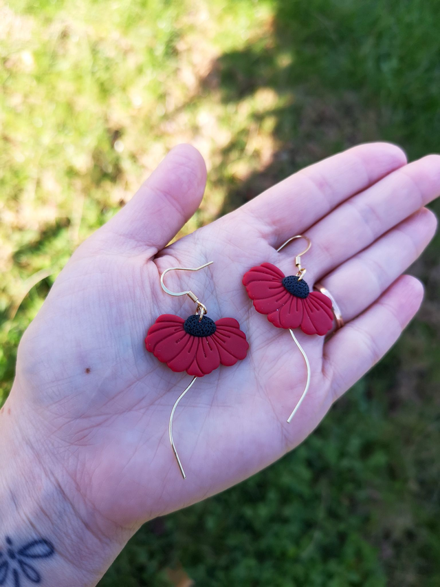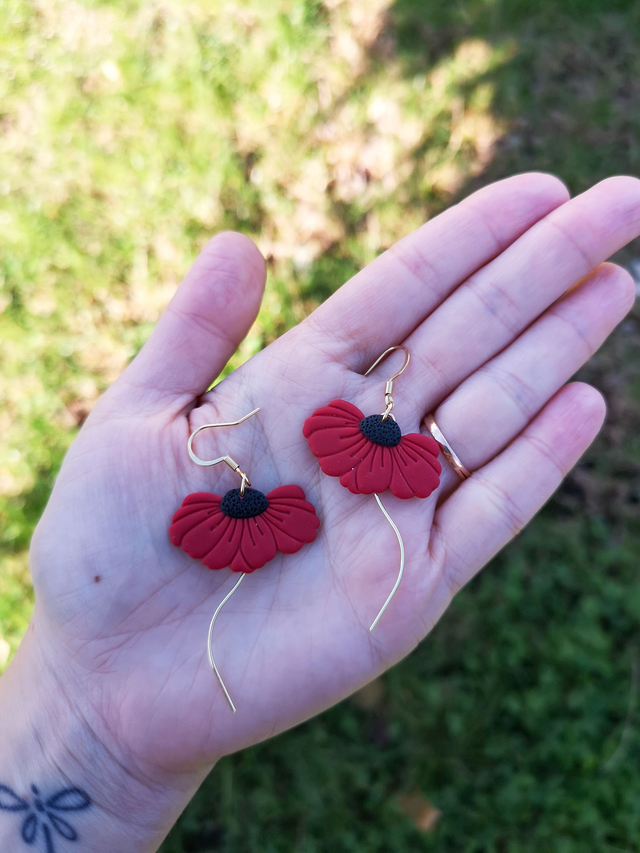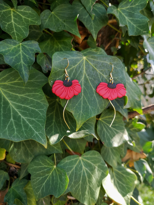 Boucles d'oreilles réalisées en argile polymère, le crochet d'oreille est en acier inoxydable plaqué or fin.