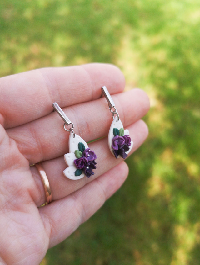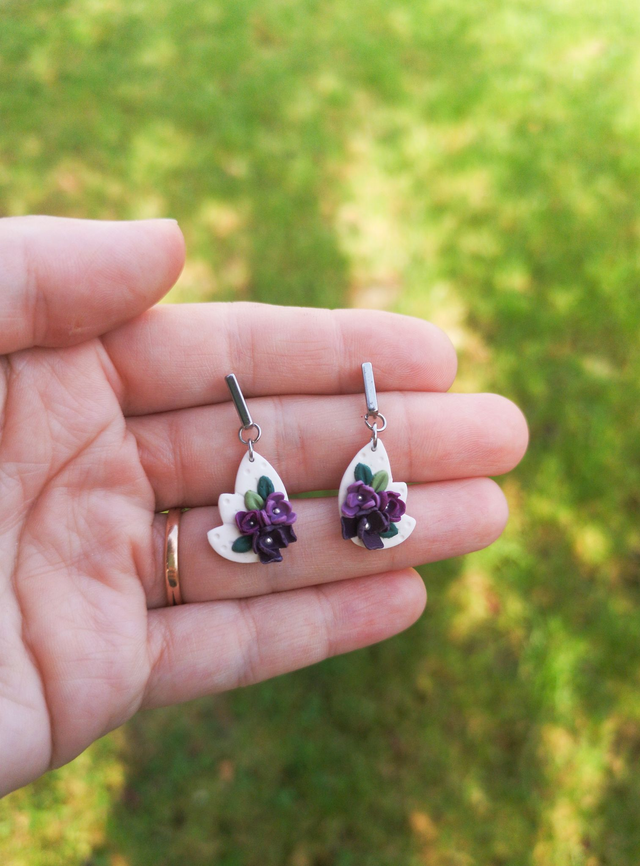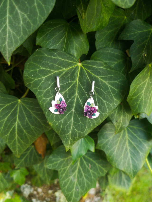 Boucles d'oreilles réalisées en argile polymère, le clou d'oreille est en acier inoxydable.
