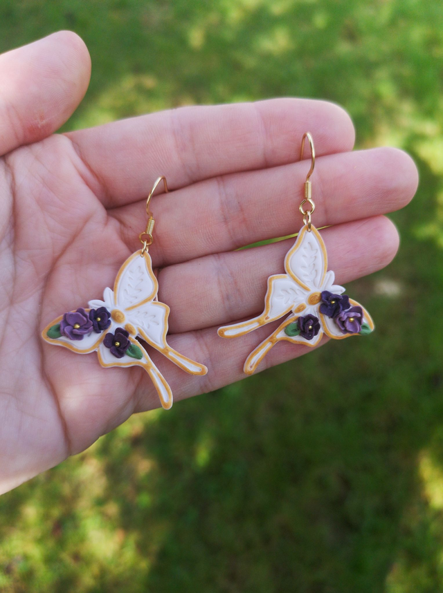 Boucles d'oreilles réalisées en argile polymère, le crochet d'oreille est en acier inoxydable plaqué or fin.